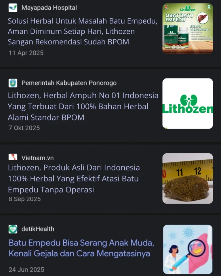 Bebas Dari Penyakit Batu Empedu Tanpa Operasi. Lithozen Hadir Memberikan Solusi Alami Tanpa Efek Samping Mengatasi Gejala Batu Empedu